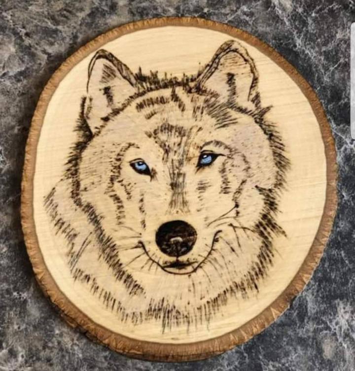 Punuar me teknikën e pirografisë mbi pllakë druri natyral, me detaje të imta që e bëjnë secilin punim unik.