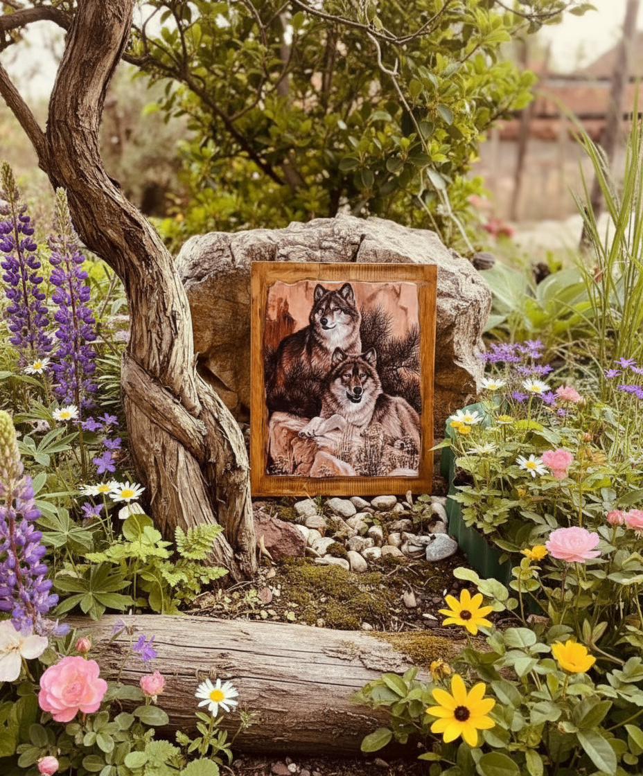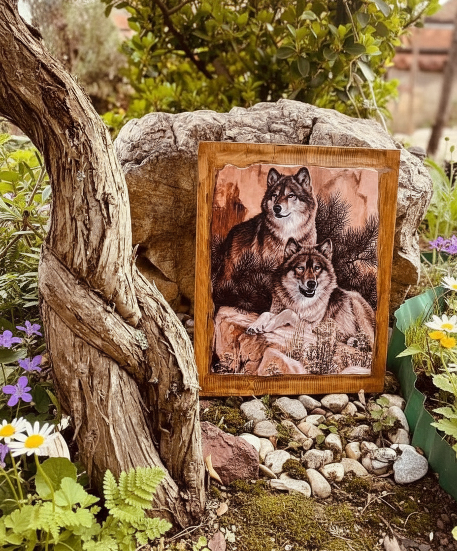 Pikturuar me dorë mbi dru të përzgjedhur, kjo copë sjell energjinë e egër të natyrës dhe elegancën e punimit artizanal.