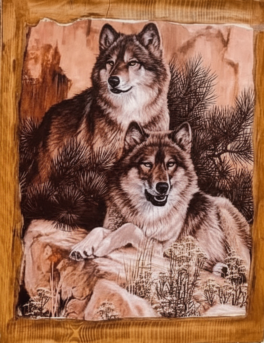Një vepër e fuqishme që paraqet dy ujq në mes të natyrës, simbol i forcës, besnikërisë dhe unitetit.